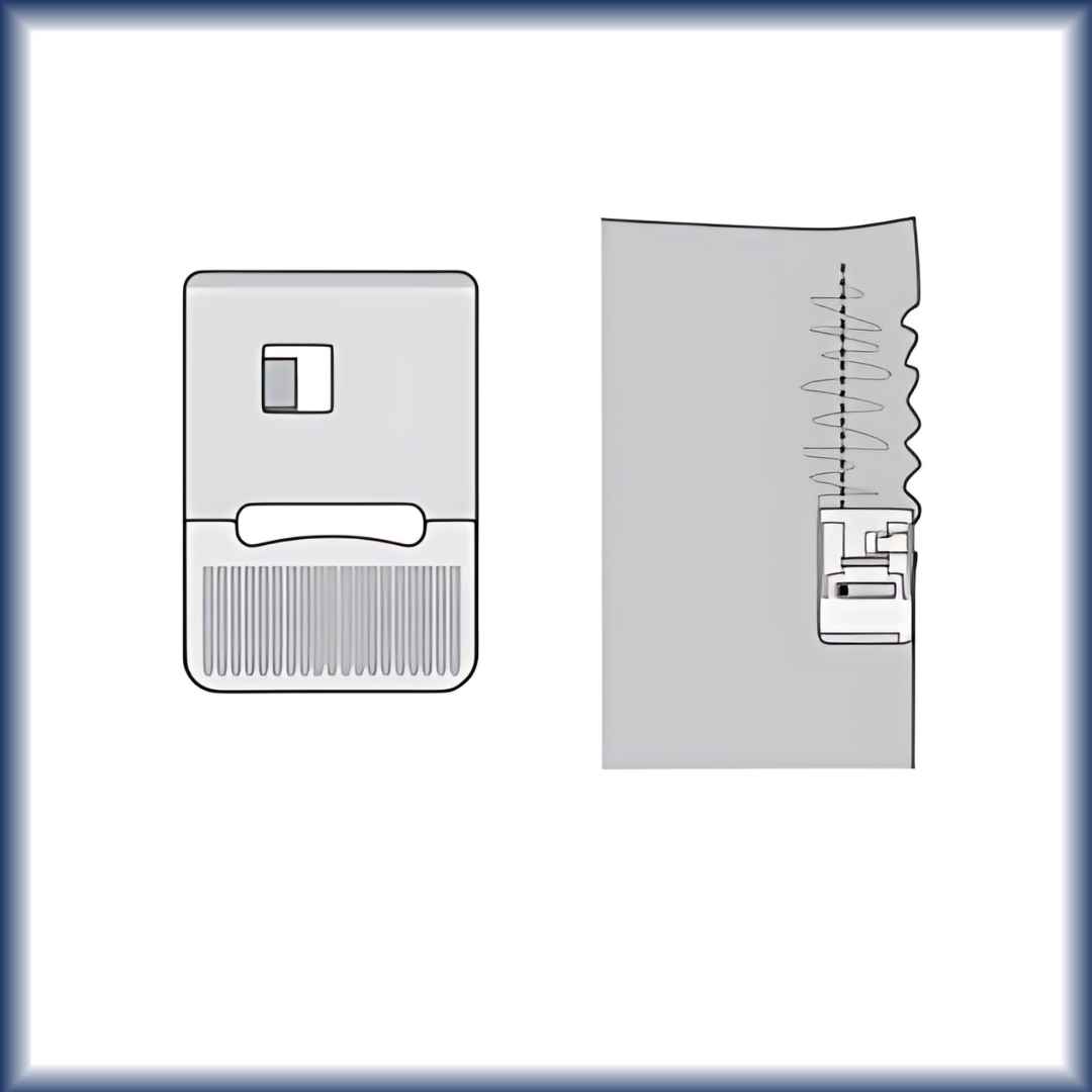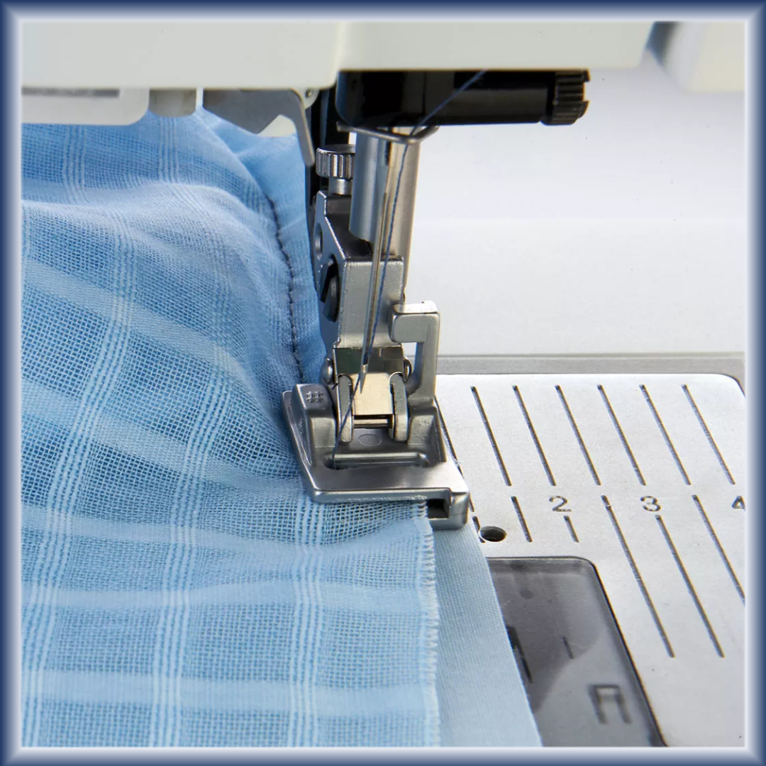Gathering is a classic decorative technique. It's easy with this special foot, which is especially useful for sewing flounces on cushions and curtains or for attaching gathered seams on children‘s clothing. You can simultaneously stitch and gather two layers of fabric quickly and easily.